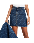 Blue `Couture` Print Denim Mini Skirt